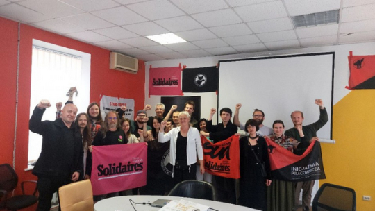 Am 21. und 22. Juni organisierte das Internationale Netzwerk für Solidarität und Kämpfe der Arbeiter.innen (International Labour Network of Solidarity and Struggles) ein Treffen in Kijiw mit Vertretern mehrerer unabhängiger Gewerkschaften in der Ukraine: – BE LIKE WE ARE, eine ukrainische Gewerkschaft für Krankenpflegerinnen und Krankenpfleger. – DIRECT ACTION, eine Studentenvereinigung in der Ukraine. – Die regionale Gewerkschaft KVPU in KriwijRig. – Die unabhängige Gewerkschaft der Eisenbahnarbeiter in der Region KriwijRig, die der KVPU angeschlossen ist. – Die unabhängige Gewerkschaft der Eisenbahnarbeiter in Kiew, die der KVPU angeschlossen ist. Neben der Gewerkschaft SOLIDAIRES war auch die polnische branchenübergreifende Gewerkschaftsorganisation WORKERS‘ INITIATIVE vertreten.
